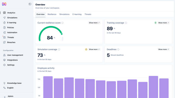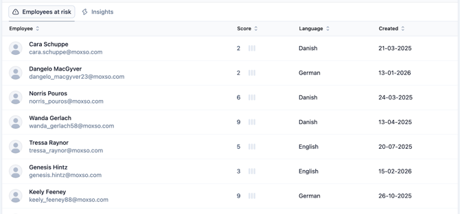In particular, we want to underline the Employees at risk section under the Resilience tab that will save you time by listing your employees with the lowest Resilience Score and that need attention.