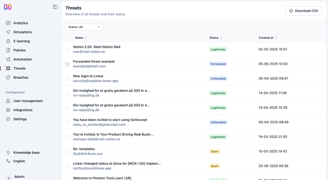 Moxso’s Threat Management conducts an automatic analysis of each reported threat. Based on this comprehensive analysis, admin or IT should be able to tell whether or not the reported email is a phishing attempt.
