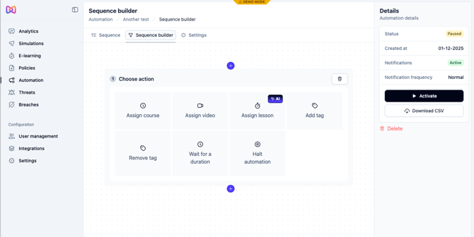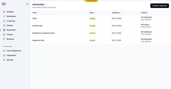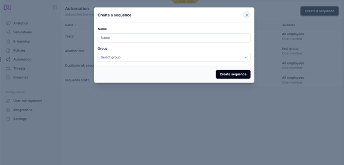 In general we also recommend having a sequence specifically for new employees as they typically pose a greater security risk than existing employees. You may also wish to create a sequence with more advanced training for the employees in your organization that have access to more sensitive components such as your IT team.